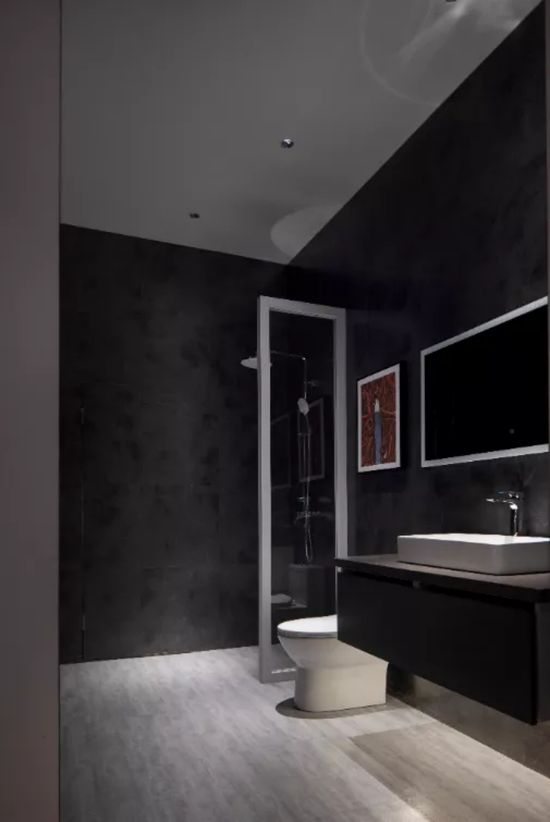 卫浴空间的低位照明在感应人起夜之后会自动开启,既提升了空间的氛围感,也能充当起夜灯具使用,不会叫醒还有睡意的人。