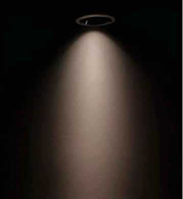 而赫兹系列筒灯则是光线经过了二次光学,并有一部分光照在黑光杯上,再由黑光杯精准控光,达到更好的防眩效果。