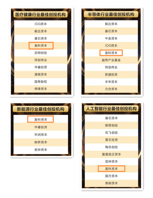 盈科资本聚焦的生物医药及新能源、人工智能、半导体等硬科技领域在本次评选中全面绽放,获得大满贯。分别斩获“2021年中国创投金鹰奖医疗健康行业最佳创投机构”、“2021年中国创投金鹰奖新能源行业最佳创投机构”、“2021年中国创投金鹰奖新能源行业最佳创投机构”、“2021年中国创投金鹰奖半导体行业最佳创投机构”等重磅荣誉。