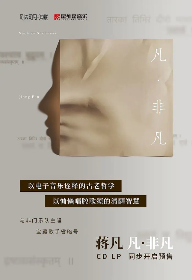 在电子音乐到心灵音乐这两段非常特别的音乐旅程之后,蒋凡《凡·非凡》这张专辑在这个很重要的时间节点上,恰到好处地与大家见面了。看似一次偶然的机缘,也许是冥冥之中的注定。《凡·非凡》以电子音乐诠释的古老哲学,以慵懒唱腔歌颂的清醒智慧,这次由星外星音乐发行的实体专辑中除了CD,也同步发行45转的LP,采用10寸透明水晶胶体,即日起将在享乐音乐商城,网易云商城,QQ音乐商城,天猫等线上全渠道预售。