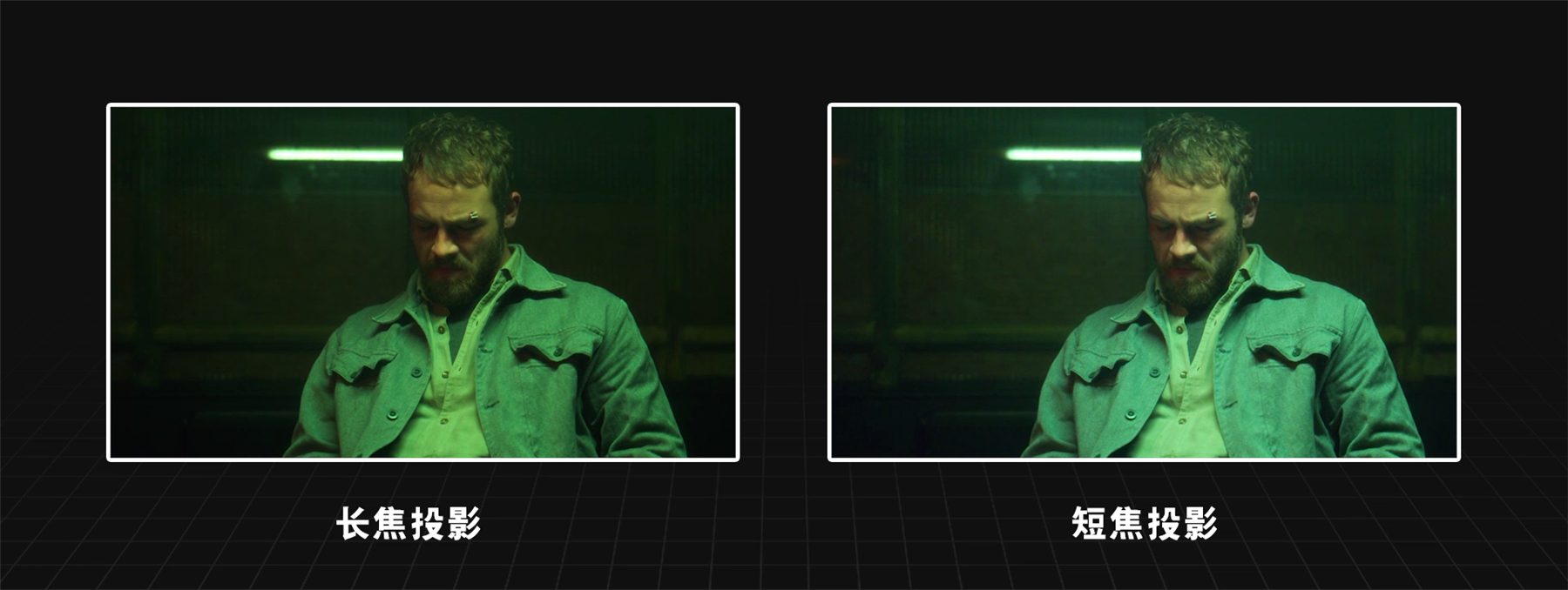 右侧的是短焦,投出150吋的画面,它距离墙面只有1米左右。